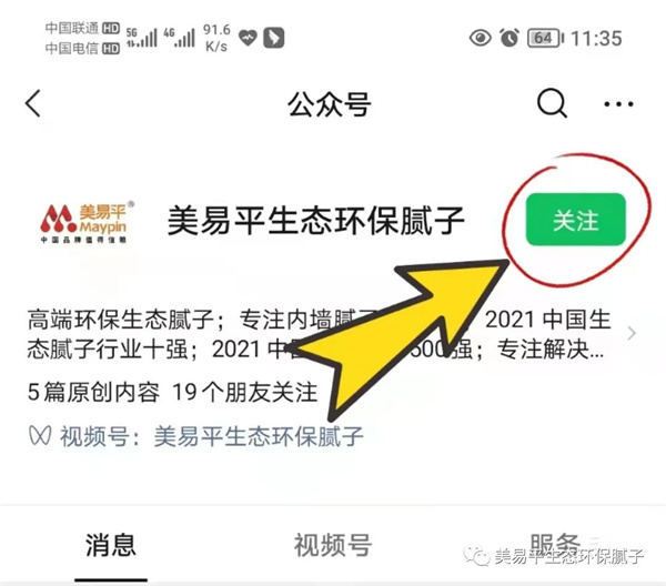 步驟四:點擊關(guān)注美易平生態(tài)環(huán)保膩子