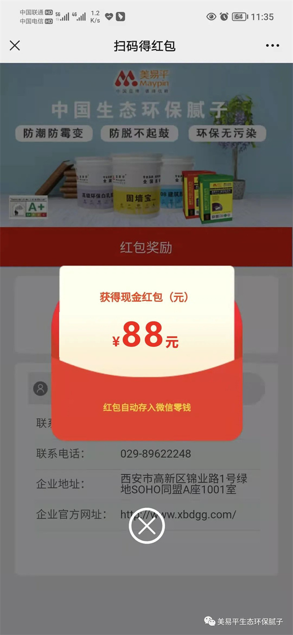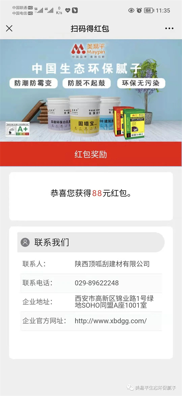 詢問門店,購買美易平指定產(chǎn)品,用手機微信掃描包裝袋里面的二維碼,領(lǐng)取微信紅包,最高中獎金額88元。